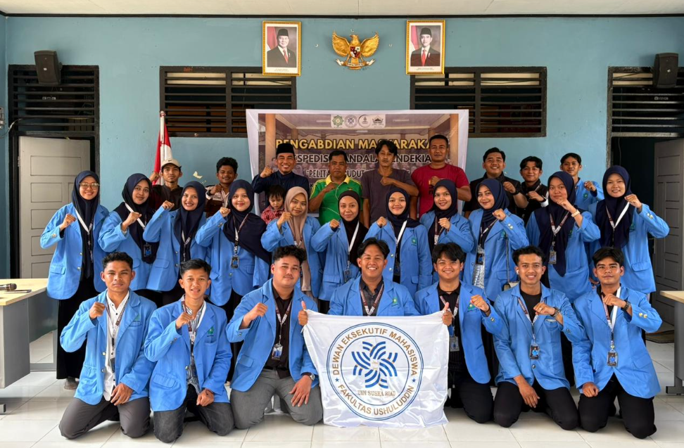 Fush – Dewan Eksekutif Mahasiswa (DEMA) Fakultas Ushuluddin UIN Sultan Syarif Kasim (Suska) Riau sukses menyelenggarakan program pengabdian masyarakat bertajuk “Ekspedisi Mandala Cendikia 2025”. Kegiatan yang berfokus pada pendidikan dan syiar Islam ini dipusatkan di Desa Tanjung Belit, Kecamatan Kampar Kiri Hulu, Kabupaten Kampar, dan berlangsung selama empat hari, dari tanggal 16 hingga 19 Oktober 2025.
