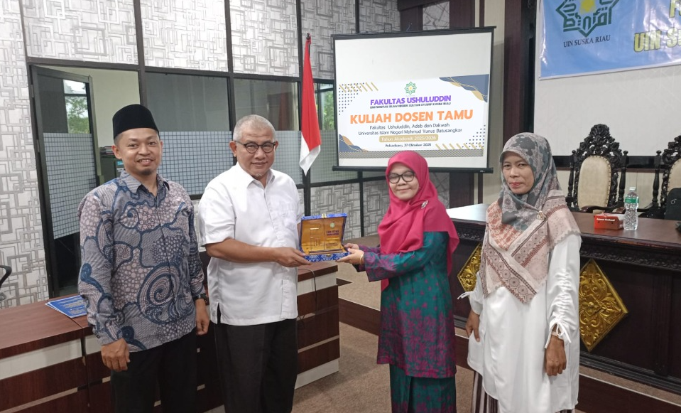 Fush – Fakultas Ushuluddin Universitas Islam Negeri Sultan Syarif Kasim (UIN Suska) Riau menggelar kegiatan Kuliah Dosen Tamu dalam rangka penguatan atmosfer akademik dan perluasan wawasan riset mahasiswa. Kegiatan ini menghadirkan dua pakar dari Universitas Islam Negeri (UIN) Mahmud Yunus Batusangkar sebagai narasumber utama. Kuliah Dosen Tamu kali ini mengetengahkan pembahasan mengenai metodologi dan peluang riset tafsir kontemporer, dan dilaksanakan di dua lokasi berbeda secara paralel untuk memaksimalkan transfer pengetahuan.